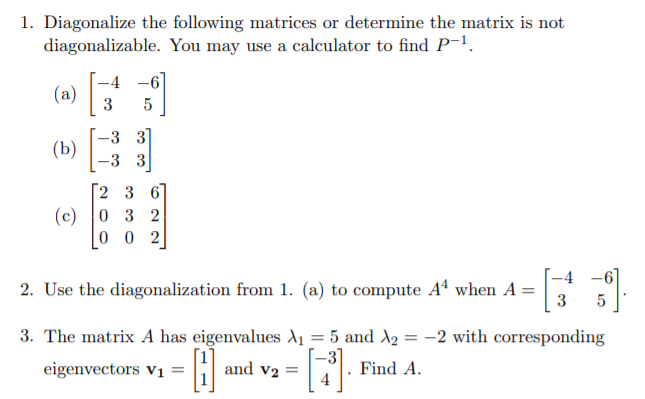 1 Diagonalize The Following Matrices Or Determine Chegg Com
