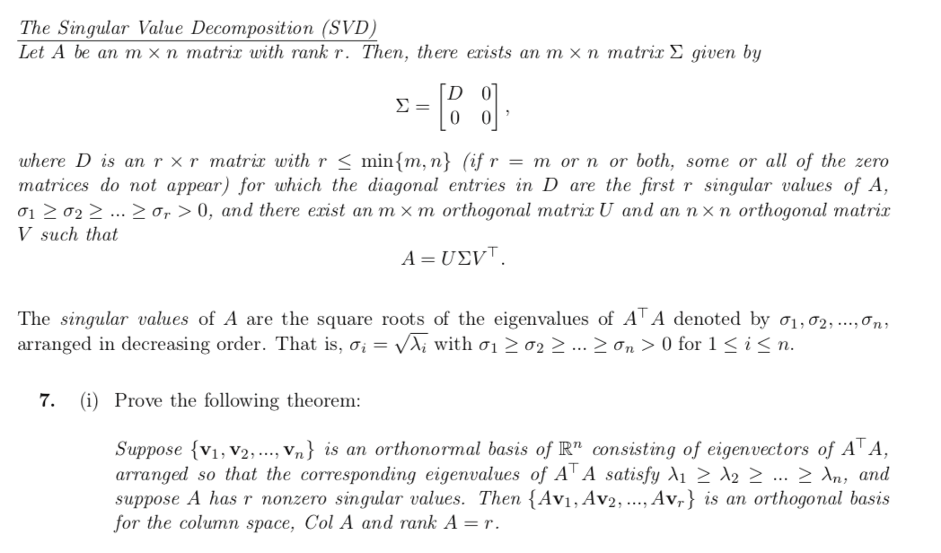 The Singular Value Decomposition Svd Let A Be An M Chegg Com