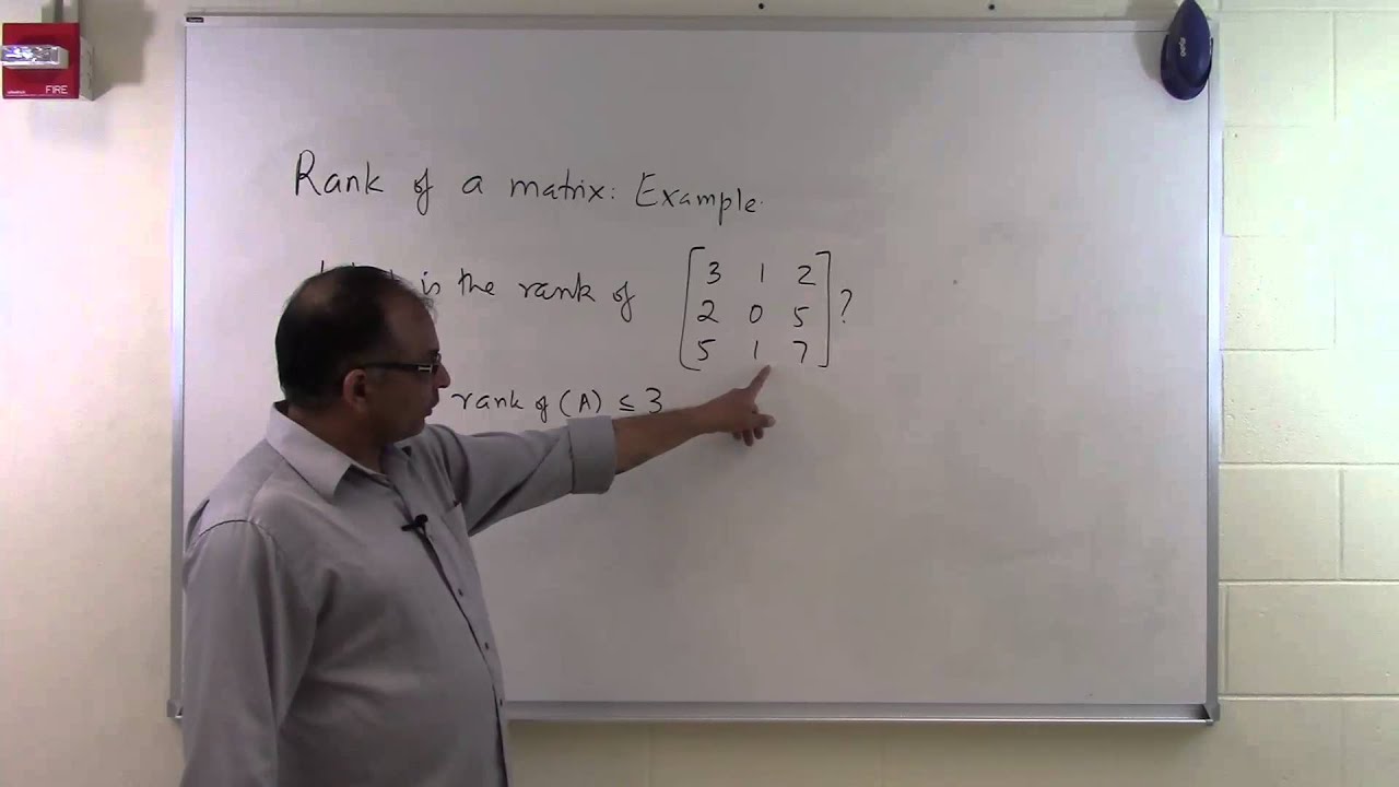 A This is the 2x2 matrix. If the matrix has at least 1 element then we know that the rank has to at least be 1. If the determinant is zero change a number in the 2x2 matrix.