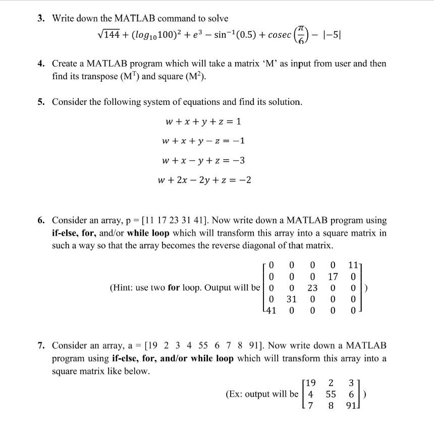 3 Write Down The Matlab Command To Solve V144 Chegg Com