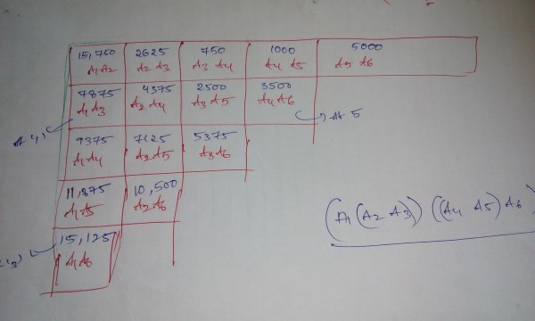 Count of multiplications for each parenthesis. N 4 arr 10 30 5 60 Output. N length p-1 Where n is the total number of elements And length p 5 n 5 - 1 4 n 4 Now we construct two tables m and s.